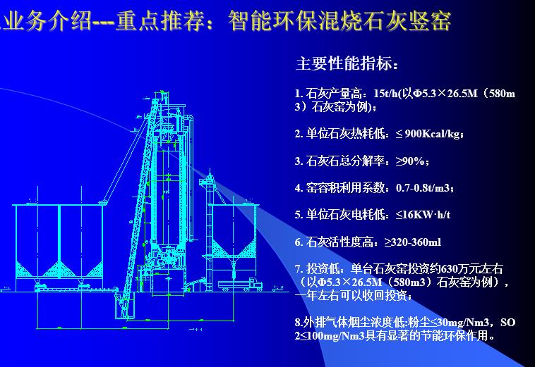 7. 投資低:單臺石灰窯投資約630萬元左右(以Φ5.3×26.5M(580m3)石灰窯為例),一年左右可以收回投資;