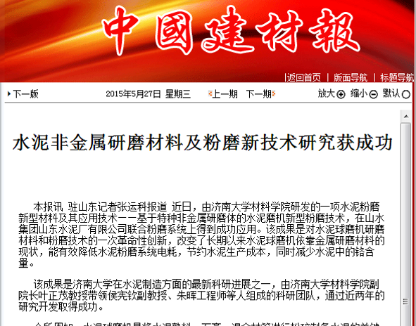 2015年5月27日中國(guó)建材報(bào)首版刊登非金屬研磨體的新聞報(bào)道